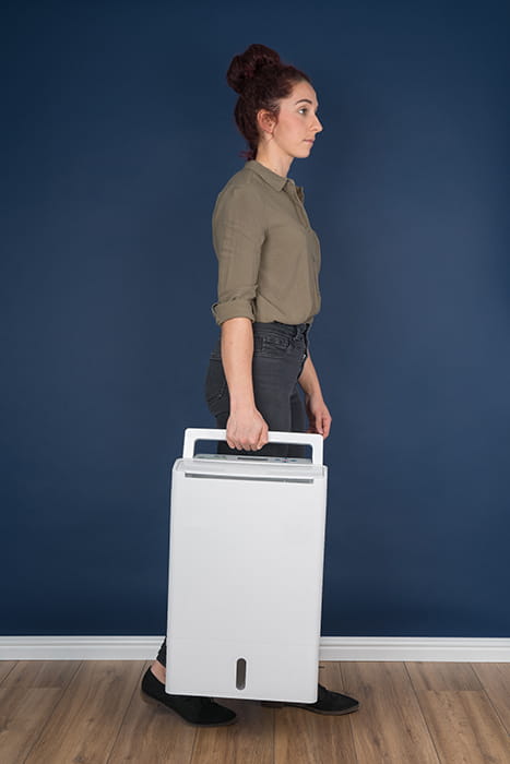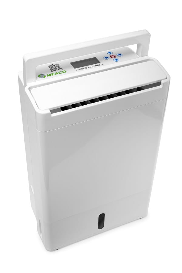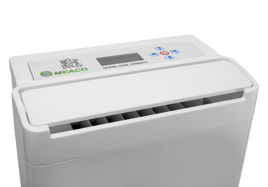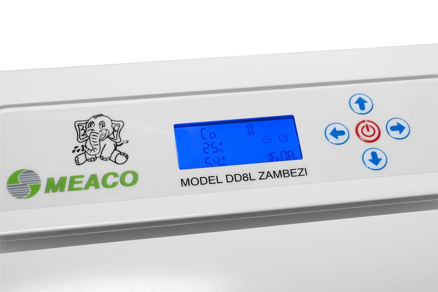 Osuszacz adsorpcyjny Meaco DD8L Zambezi z wyświetlaczem LCD, umożliwiającym łatwy dostęp do dodatkowych funkcji (aktualna wilgotność względna i temperatura; wybór docelowego poziomu wilgotności; trzy prędkości pracy, kilka trybów pracy wylotu powietrza; unikalny tryb suszenia z minimalnym zużyciem energii).