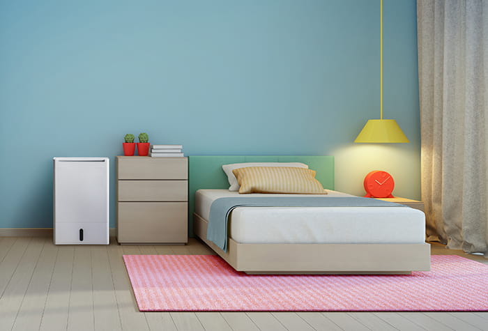 • ostrzeżenie „Włącz mnie”, gdy wilgotność wzrasta do 70%, a osuszacz jest wyłączony;