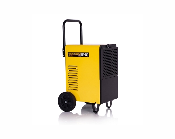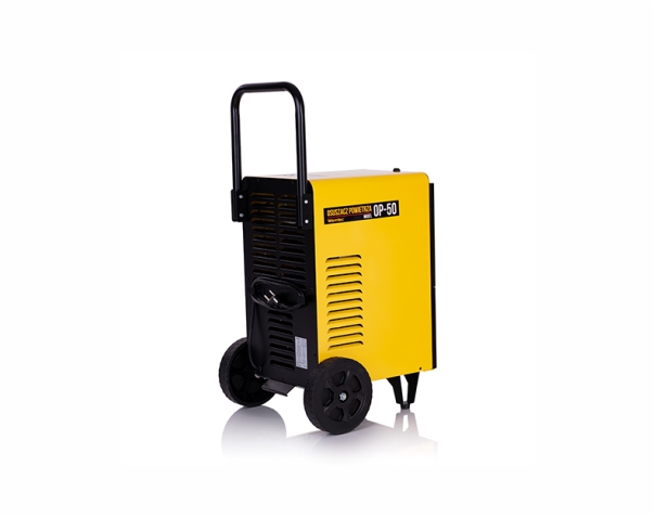 Osuszacz powietrza OP-50 jest urządzeniem przemysłowym i budowlanym. Oznacza to, że jest skonstruowany tak, aby wytrzymać trudne warunki i długotrwałą eksploatację. Ponadto, aby uniknąć zmniejszenia wydajności z powodu zanieczyszczenia wewnętrznych elementów osuszacza, stosuje się zmywalny filtr siatkowy.