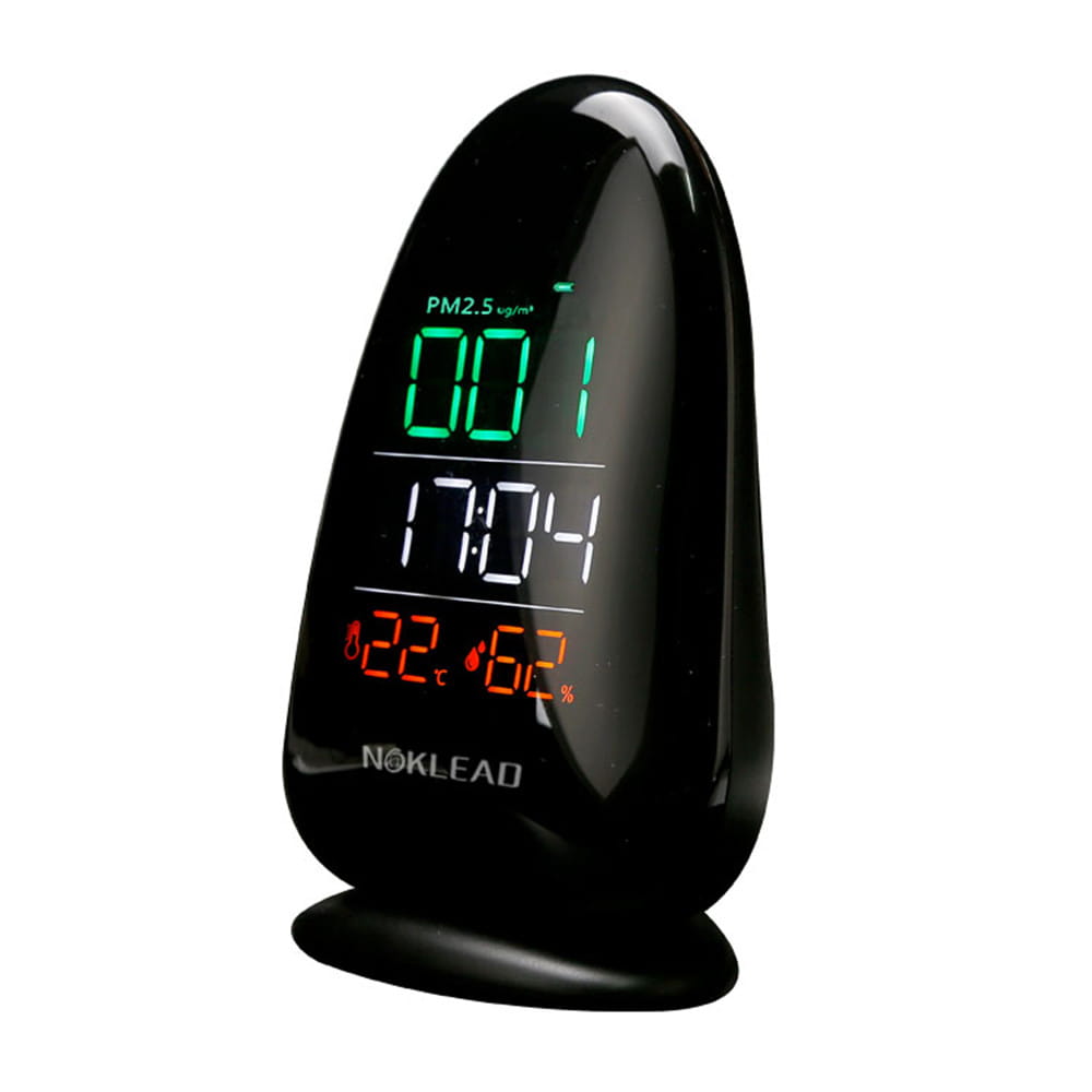 Posiada także higrometr, który wskazuje aktualny poziom wilgotności, temperaturę oraz posiada zegar. Urządzenie jest niewielkie i przenośne, dlatego możesz je zabrać ze sobą w dowolnym momencie i sprawdzić jakość powietrza, temperaturę czy poziom wilgotności w dowolnym miejscu. – NOKLEAD A8   Funkcje detektora A8 PM2.5 – monitoruje na bieżąco wartość pyłu oraz zanieczyszczenia w powietrzu – wskazuje poziom wilgotności – posiada wyświetlacz czasu / cyfrowy wyświetlacz LED – posiada precyzyjny czujnik laserowy – ładowarka w zestawie – wbudowany akumulator litowy   Skala pomiaru zanieczyszczenia powietrza PM2.5 PM2.5 zielony wskaźnik wyświetlacza:    Doskonały 0-50 µg/m3PM2.5 zielony wskaźnik wyświetlacza:    Dobry 51-100 µg/m3PM2.5 czerwony wskaźnik wyświetlacza: Słabe zanieczyszczenia 101-150 µg/m3PM2.5 czerwony wskaźnik wyświetlacza: Średnie zanieczyszczenie 151-200 µg/m3PM2.5 czerwony wskaźnik wyświetlacza: Mocna zanieczyszczenie 201 µg/m3 i więcej   DANE TECHNICZNE: Wymiary 141 mm x 94 mm x 55 mm  Wyświetlacz Cyfrowy wyświetlacz LED Kolor Czarny Zasada pomiaru Rozproszenie światła lasera  Zakres pomiarowy PM2.5     0-999 µm/m3 Dokładność pomiaru PM2.5 ±15% 10 µg/m3 Zakres detekcji wilgotności 20%RH—90%RH Dokładności detekcji wilgotności        ±5%RH Zasilanie Stacja ładująca + Wbudowana bateria Czas reakcji < 3s Pojemność baterii 1000 mAh Zakres pomiaru temperatury -9 ~ +50 °C