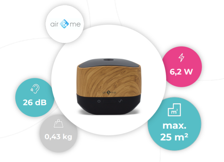 Air&me Airom – ultradźwiękowy dyfuzor olejków eterycznych (25 m²).