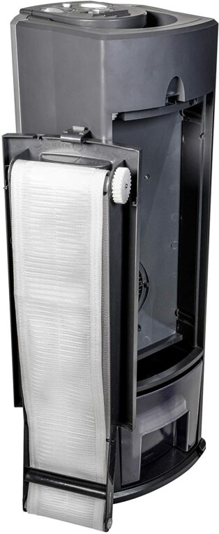 Łączy w sobie prawdziwy oczyszczacz powietrza HEPA, grzejnik, wydajny wentylator i nawilżacz powietrza! Jest lekki i wystarczająco mały, aby można go było przenosić z pokoju do sypialni.