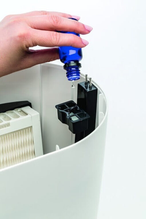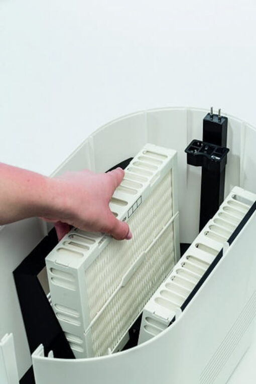 Technologia zasysania powietrza przez dwie maty antybakteryjne powoduje, że część zanieczyszczeń z powietrza zostaje usunięta z powietrza i pozostaje w urządzeniu. W ten sposób nawilżone powietrze odprowadzane do pomieszczenia jest znacznie zdrowsze. Kasetę filtrującą przy intensywnym użytkowaniu, należy wymieniać (w zależności od twardości i rodzaju użytej wody) co 2-3 miesiące.