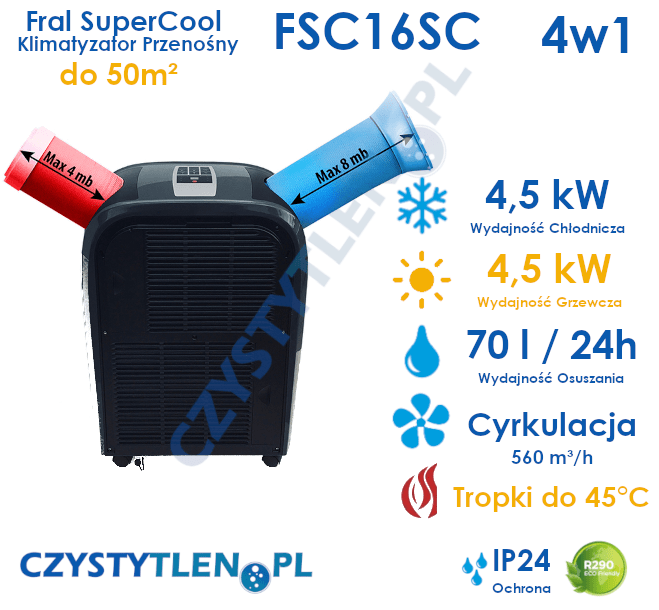 Nowy model – kompaktowy Mini Spot Cooler z pompą cieplną sterowany elektronicznie SUPER COOL model FSC16SC to doskonałe rozwiązanie wszędzie tam, gdzie niemożliwe jest zastosowanie klimatyzatora stacjonarnego.