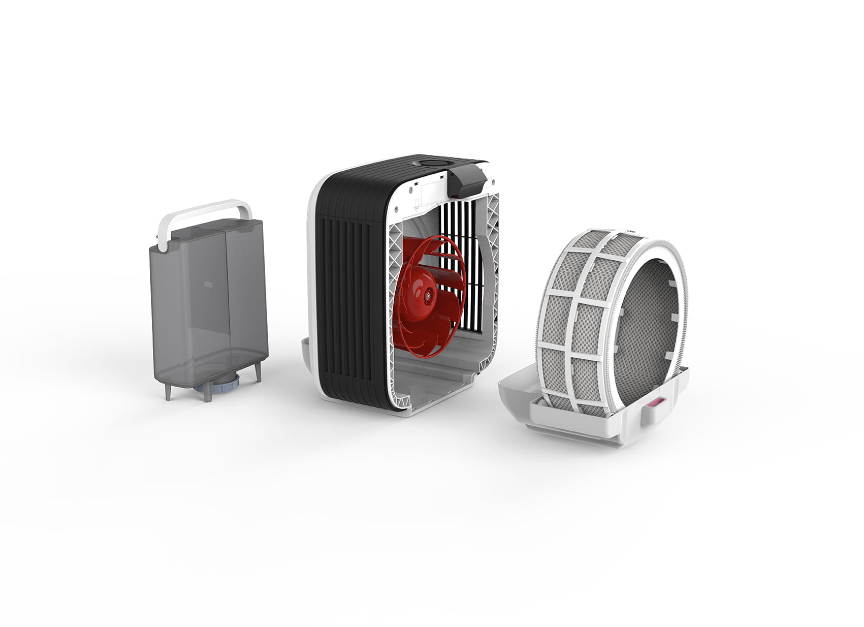 Za sprawą elementów nadających się do mycia w zmywarce (elementy, które mają styczność z wodą, więcej w instrukcji obsługi urządzenia) i prania w pralce (mata ewaporcyjna), a także programu samoczyszczącego, konserwacja H700 jest prosta i łatwa. Filtr wstępny zatrzymuje większe cząsteczki, takie jak włosy i kurz, a filtr HYBRID, składający się z filtra węglowego i HEPA, usuwa nawet najmniejsze cząstki, jak bakterie i wirusy.