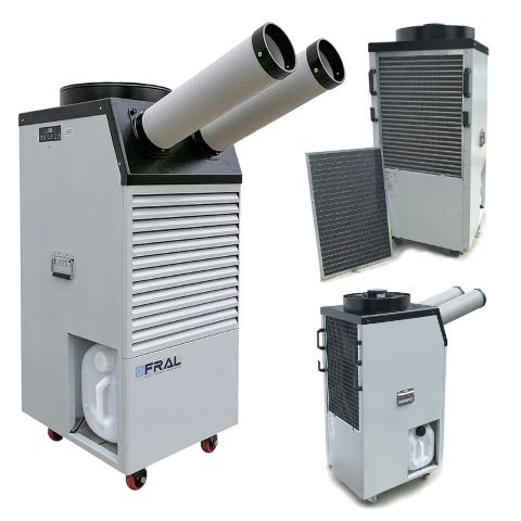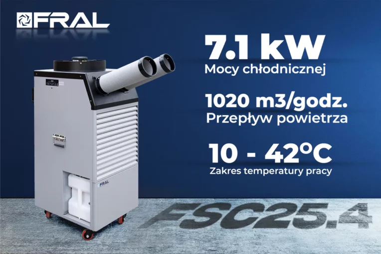 Nowoczesny wysoko wydajny mobilny klimatyzator przemysłowy sterowany elektronicznie panelem sterowania z wyświetlaczem LED. FRAL FSC25.4 doskonałe rozwiązanie wszędzie tam, gdzie niemożliwe jest zastosowanie klimatyzatora stacjonarnego