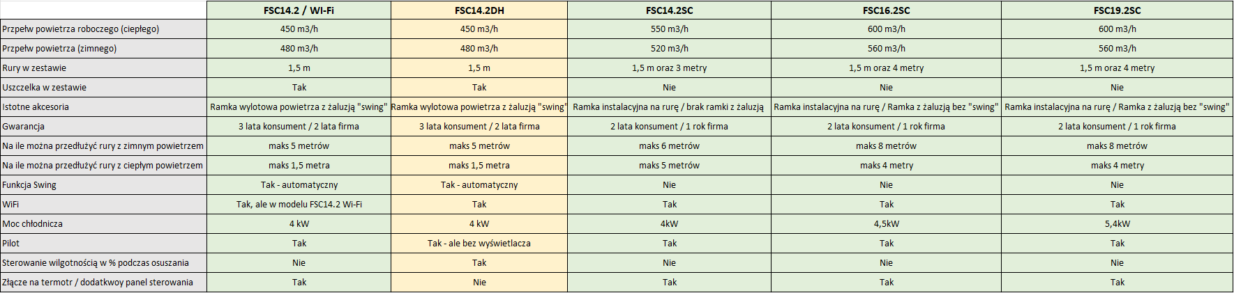 Polecamy sprawdzenie testu, który jest poniżej, akurat w tym teście omawiamy klasyczne parametry tego klimatyzatora. Modelu FSC14.2DH nie mieliśmy okazji przetestować. Przy czym jak to mówią… buda jest ta sama, tylko wyposażenie jest bardziej premium 😉