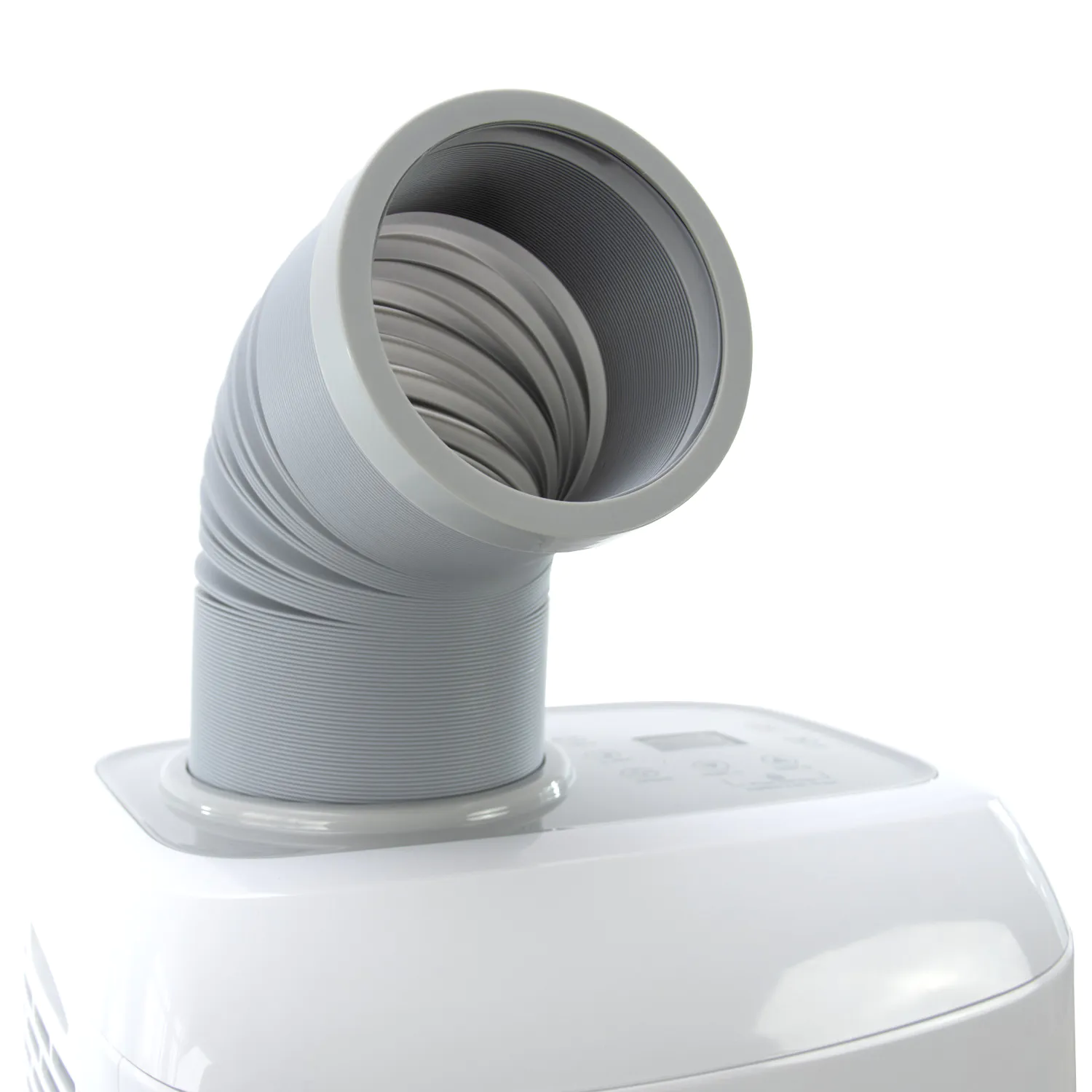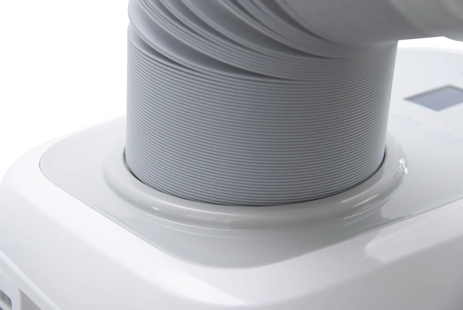 to małe, ale potężne urządzenie. Jego wymiary to tylko 36 cm x 50 cm x 28 cm (szerokość x wysokość x głębokość), co jest podobne do rozmiarów dużego pudełka na buty. To niewielkie urządzenie waży 14,5 kg, co sprawia, że jest niezwykle przenośne, a wbudowane kółka dodatkowo ułatwiają transport. Nic więc dziwnego, że jest często używane przez właścicieli przyczep kempingowych i kamperów jako środek zaradczy na letnie upały.