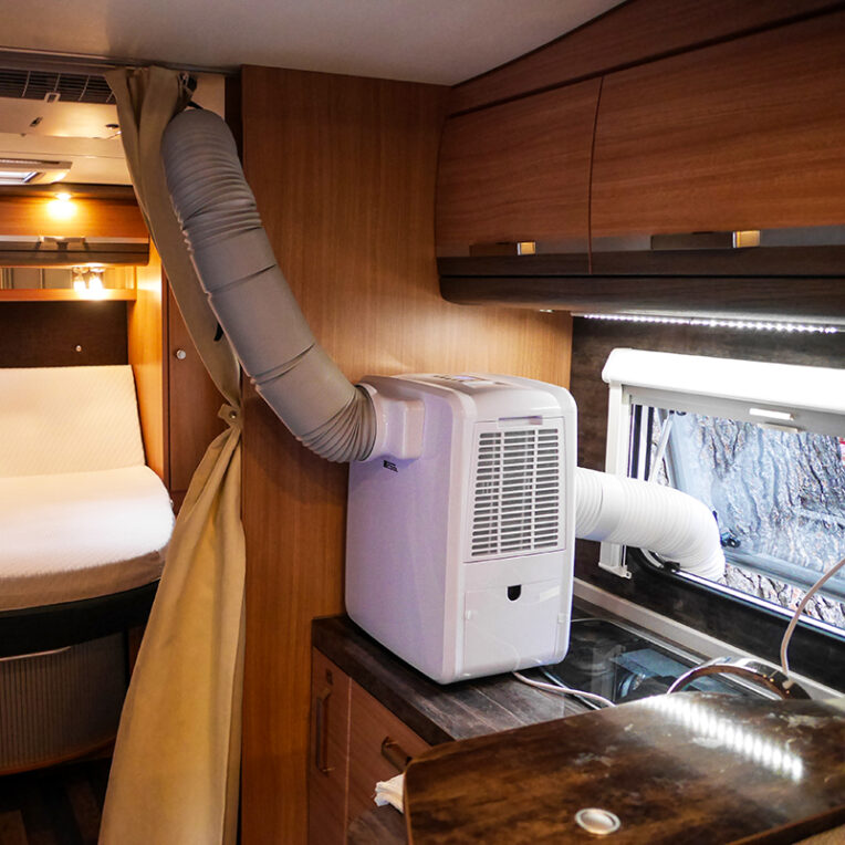 - Chłodzisz – pompuje zimne powietrze do przyczepy rurą – klimatyzator znajduje się na zewnątrz przyczepy