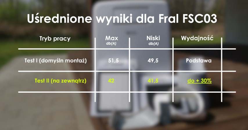 Pomimo niewielkich rozmiarów Fral Super Cool FSC03 jest urządzeniem wydajnym i skutecznym. Jego moc chłodnicza to 0,9 kW, wystarczająca do schłodzenia wnętrza małego pomieszczenia lub przyczepy kempingowej. Podobną wydajność zapewnia ogrzewanie powietrza – tutaj również osiąga się wartość 0,9 kW. Oprócz ogrzewania i suszenia ma również trzy inne tryby pracy.