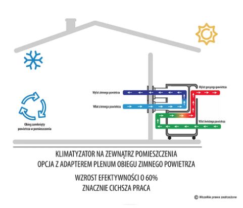 Uwaga! Plenum na filmie jest wykonane z plastiku. W tej chwili nie mamy filmu z montażu metalowego plenum. W tej wersji adaptera (metalowego) należy je wkręcić w klimatyzator.