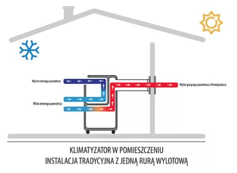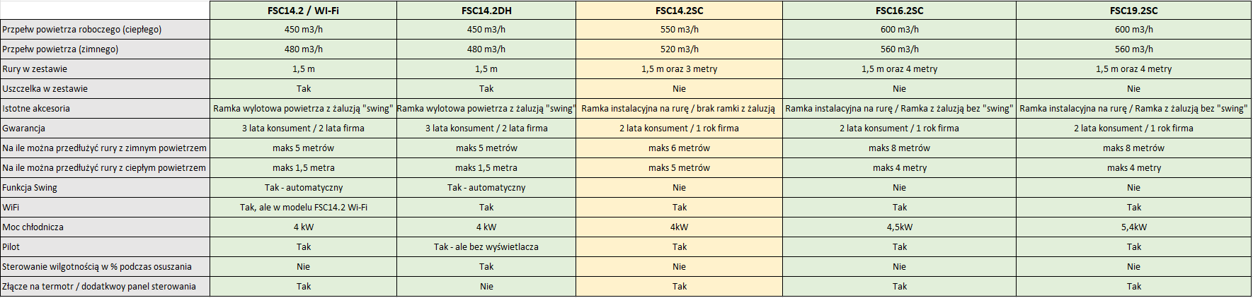 Mała uwaga: ten model w przeciwieństwie do Frala FSC14.2 lub modeli z końcówką SC nie ma dodawanej kratki wylotowej na zimne/ciepłe powietrze [link]. Klimatyzator jest standardowo dopasowany do wkręcenia dwóch rur z góry – czyli do wyprowadzenia ciepłego oraz zimnego powietrza.