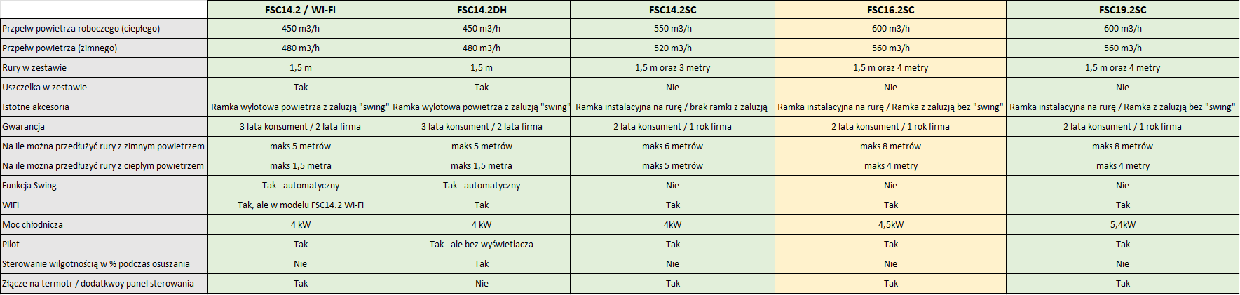 Modele SC są pozbawione funkcji SWING (brak łopatek do naprowadzania ruchu powietrza lewo/prawo).