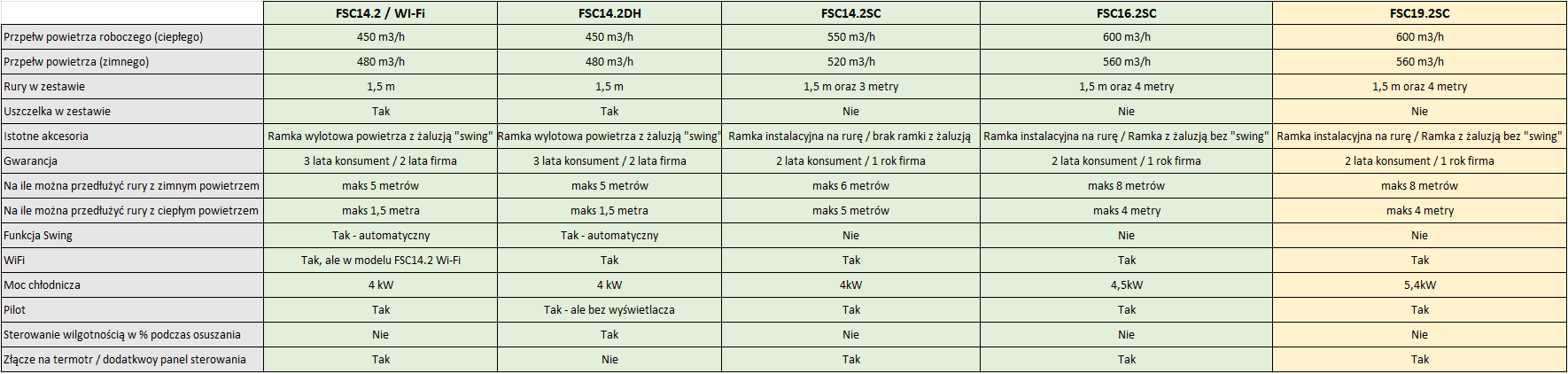 Modele SC są pozbawione funkcji SWING (brak łopatek do naprowadzania ruchu powietrza lewo/prawo).