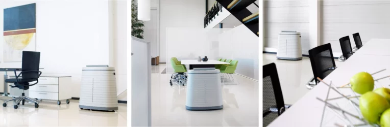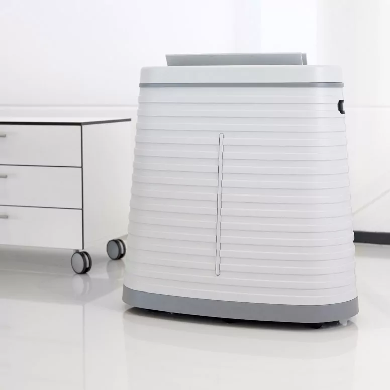 Wentylator można ustawić w trzech pozycjach, tak aby urządzenie było ledwo słyszalne w najniższej pozycji i wytwarzało silny strumień powietrza dla szybkiej i wydajnej pracy w najwyższej pozycji. Nawet w cichym położeniu urządzenie odparowuje dużą ilość wilgoci. Żądaną wilgotność można regulować w pięciu krokach oraz w trybie pracy ciągłej, w którym urządzenie działa zawsze, niezależnie od poziomu wilgotności. W sytuacjach, gdy wilgotność musi być kontrolowana z dokładnością do procenta, urządzenie może być również eksploatowane w pozycji “zdalnej” z (opcjonalnym) higrostatem.