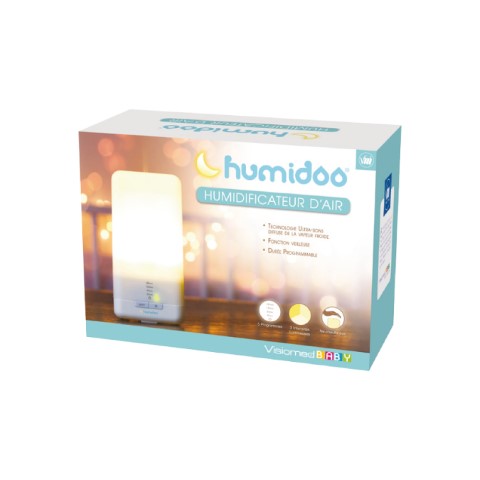 Firma Visiomed Baby stworzyła Humidoo, kompaktowy i dyskretny nawilżacz powietrza, idealny do pokoju dziecka. Wyposażony w technologię ultradźwiękową nawilżacz Humidoo roztacza zimną parę za pomocą drobnych cząsteczek, które delikatnie oczyszczają i nawilżają powietrze (nie ma ryzyka poparzenia się dziecka).