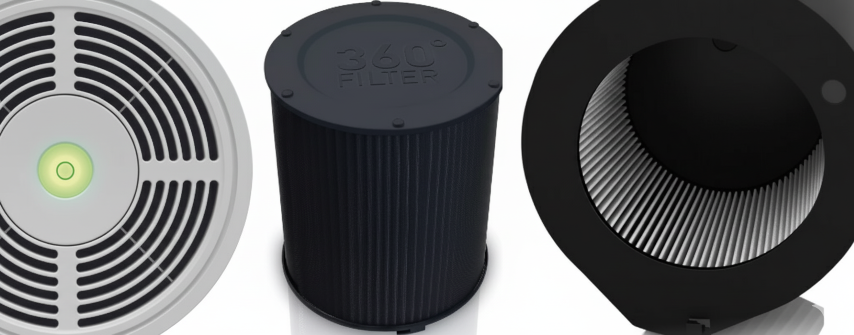 Jego kompaktowe rozmiary to zasługa innowacyjnego, hybrydowego filtra 360°, który łączy w sobie trzy warstwy: filtr wstępny, filtr HEPA H14 oraz filtr węglowy.