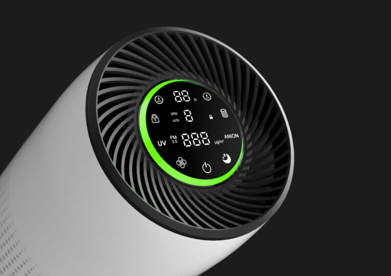 Na panelu sterowania oczyszczacza prezentowane są dane o jakości powietrza za pomocą cyfrowego wskaźnika oraz kolorowej obręczy LED, reprezentującej ogólny poziom zanieczyszczenia. Użytkownik może również samodzielnie kontrolować pracę urządzenia, wybierając jeden z czterech poziomów prędkości wentylatora.