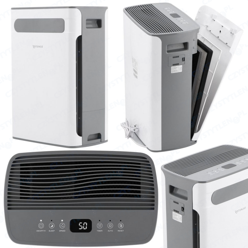 Oczyszczacz Rotenso Ione wyróżnia się wieloetapową filtracją powietrza.