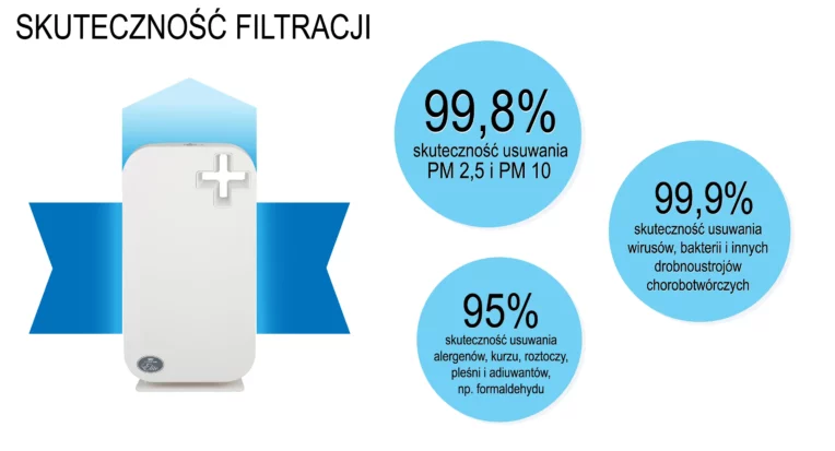 1. 99,8% skuteczność usuwania zanieczyszczeń PM 2,5 i PM 10