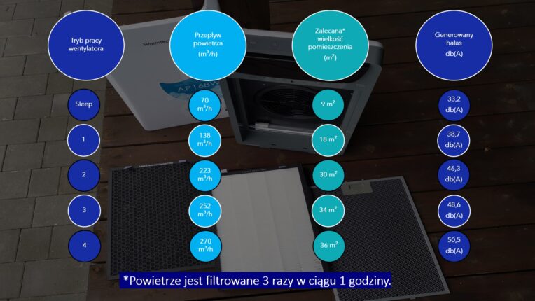 | powierzchnia oczyszczania | 30 – 60 m2 *Rekomendacja czystytlen.pl do 36m2 |