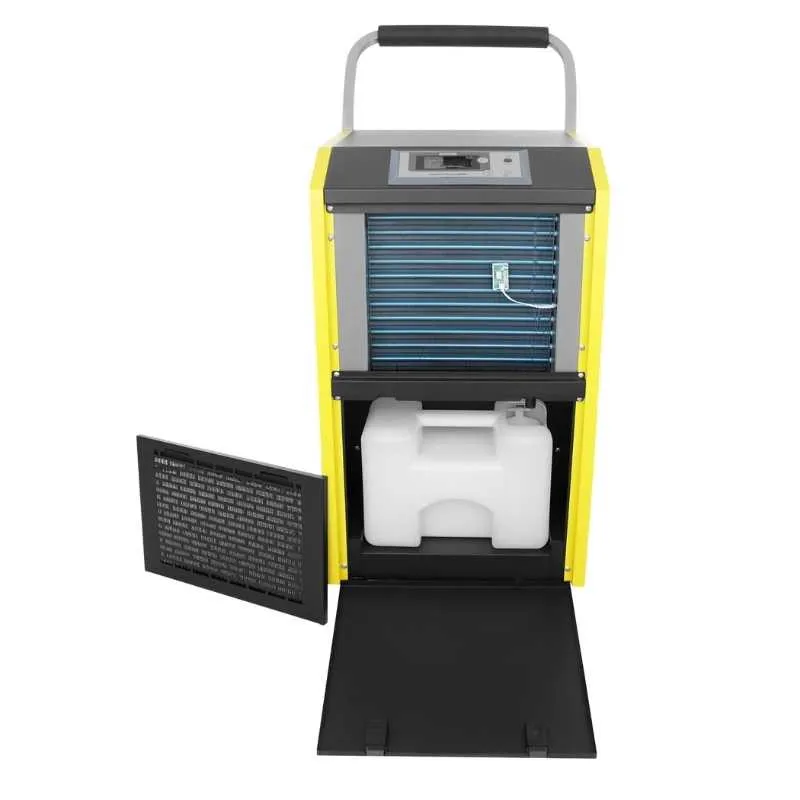 Osuszacze działają przez wychwytywanie wilgotnego powietrza. Osuszacze mają solidną konstrukcję z kółkami i uchwytem, ułatwiającymi transport, nawet w trudnych warunkach.
