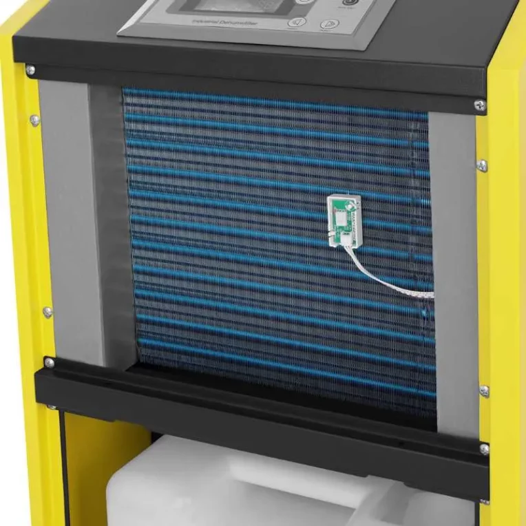 Osuszacz powietrza DEHUMI, stworzony dla celów zawodowych, jest doskonałym narzędziem dla miejsc takich jak budowy, sklepy, zakłady produkcyjne i magazyny. Jego zdolność do usuwania wilgoci sięga maksymalnie  60 litrów dziennie (dla stałych warunków 30°C RH 80%), a przepływ powietrza 480m³ na godzinę zapewnia efektywność i szybkość działania.