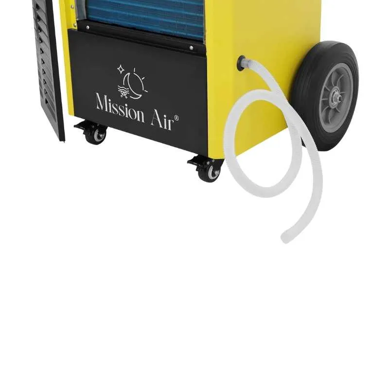 Panel sterowania osuszacza jest prosty i intuicyjny, z wyświetlaczem LCD umożliwiającym regulację wilgotności i czasu działania urządzenia. Osuszacz MissionAir skutecznie usuwa nadmiar wilgoci poprzez stałe odprowadzania skroplin za pomocą wężyka.