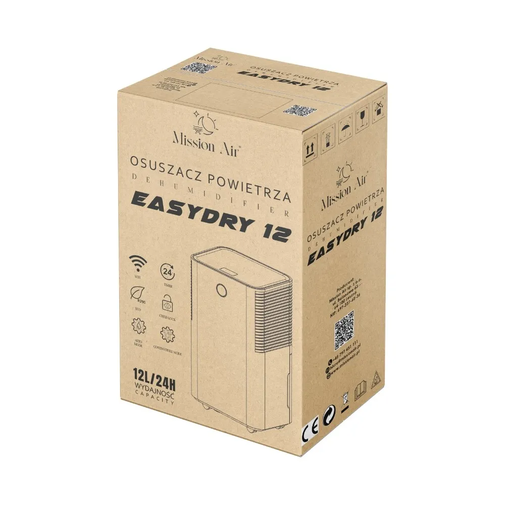 EASYDRY 12L od Mission Air to niezastąpiony sprzęt w łazience, pralni czy suszarni, który zapewni Ci wygodę, zdrowie i świeżość w Twoim domu.