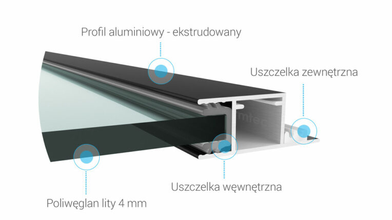 - wytrzymały materiał w postaci litego poliwęglanu o grubości 4 mm,