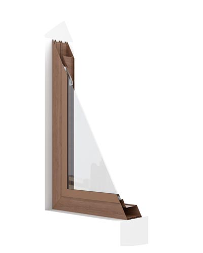 Profil ramy okiennej TermoBlock Pro wykonany jest z malowanego proszkowo, tłoczonego aluminium ekstrudowanego. W porównaniu do profilu ze standardowego aluminium, oznacza to większą wytrzymałość. przy zachowaniu lekkości konstrukcji.