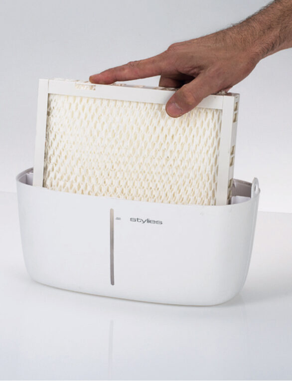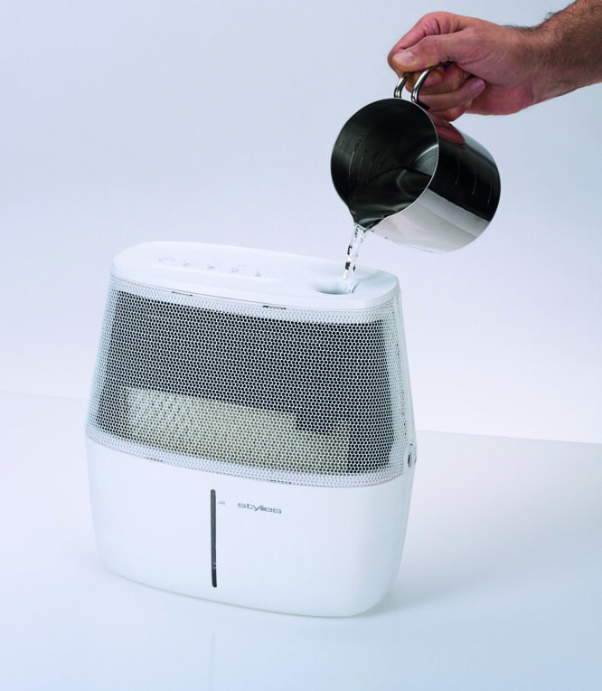 w nim zastosowane gwarantują niskie zużycie energii i niezwykle cichą pracę. Jego niewielkie rozmiary umożliwiają wstawienie go w niemal dowolne miejsce. Stylies Alaze Pro dzięki zastosowanej technologii ewaporacji charakteryzuje się niezwykle cichą pracą. Technologia ewaporacji nie wymaga dostarczania dużych ilości energii. Jest to urządzenie bardzo ekonomiczne w użytkowaniu (3,5 W). To bardzo istotne ze względu na fakt, że nawilżacze w sezonie grzewczym pracują praktycznie przez całą dobę.