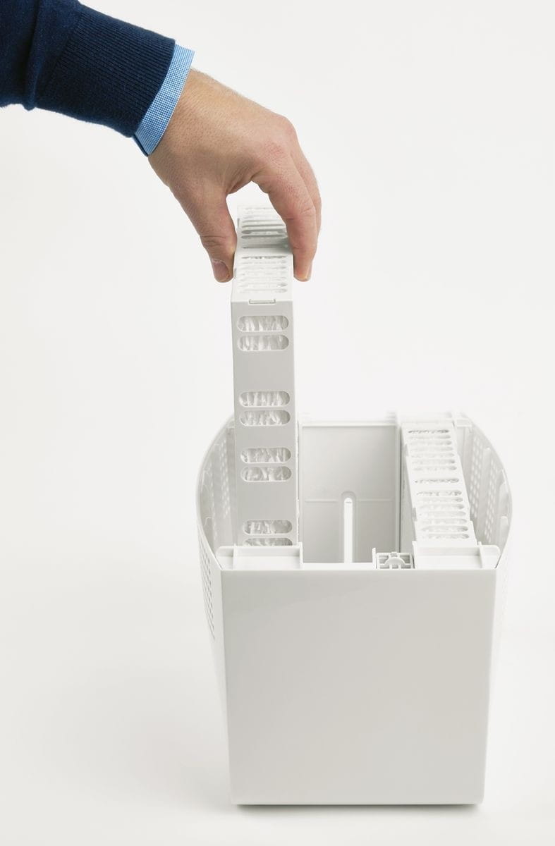 Wbudowany higrostat kontroluje poziom nawilżenia powietrza, przy czym poziom wilgotności nigdy nie przekroczy 60%, ponieważ technologia ewaporacji uniemożliwia uzyskania wyższych wartości i suche powietrze nie wchłonie jej więcej.