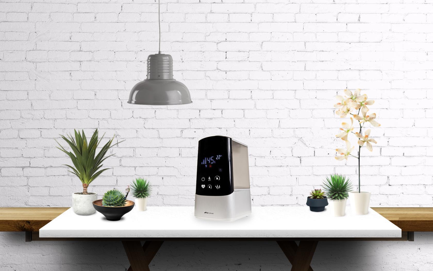 Ciepła mgiełka pozwala na lepszą dystrybucję nawilżonego powietrza w pomieszczeniu i nie ochładza go. Funkcja HygroSmart®  sama będzie dobierała wartość nawilżenia do zmieniającej się temperatury otoczenia, więc jeśli chcesz – możesz sterować nawilżaczem za pomocą jednego przycisku. Duży zbiornik na wodę o pojemności aż 5L, pozwala na ciągłą pracę urządzenie przez minimum 15 godzin. Funkcja jonizacji pozwala na wzmocnienie efektu pracy nawilżacza, poprzez generowanie cząsteczek jonów ujemnych – dzięki temu klimat w pomieszczeniach będzie jeszcze bardziej komfortowy i zdrowszy dla Twoich bliskich.