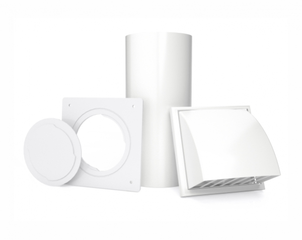 Zestaw instalacyjny rury wyrzutowej klimatyzatora przenośnego.