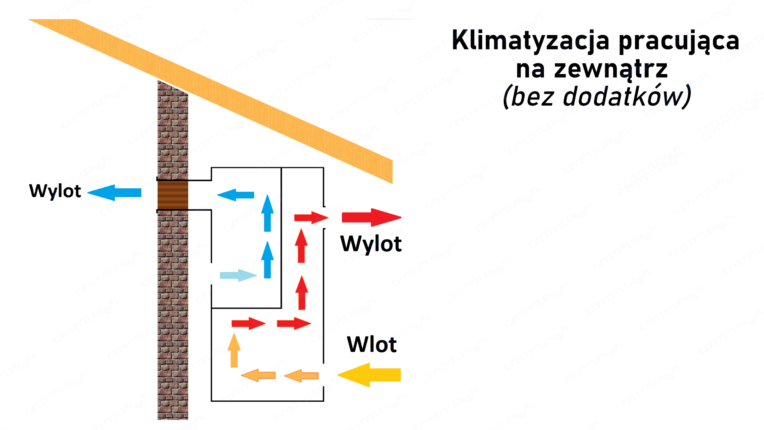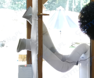 Klimatyzator w tym przypadku może stać na zewnątrz, a do swojego mieszkania wystarczy wprowadzić dwie rury. Możesz to zrobić poprzez przygotowane wcześniej otwory w ścianie, drzwi okienne bądź balkonowe. Jest to naszym zdaniem najlepsze rozwiązanie, ponieważ wtedy klimatyzator działa naprawdę bardzo cicho. Dodatkowo zwiększona jest jego wydajność nawet do 60%!
