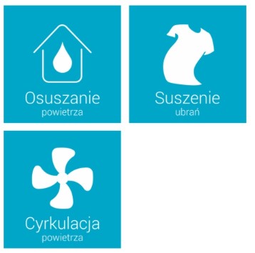 Możesz także zmienić tryby pracy – osuszanie, suszenie ubrań, cyrkulacja powietrza.