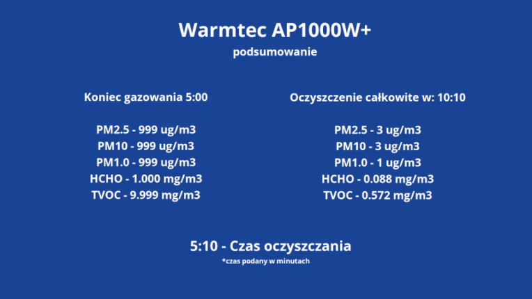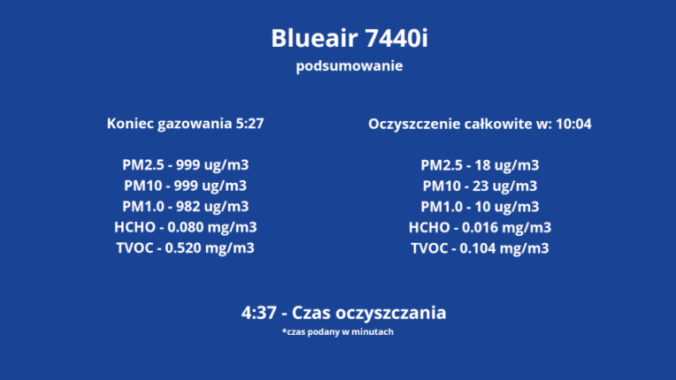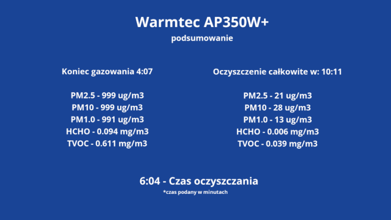 Przeprowadziliśmy test 4 oczyszczaczy powietrza na warunkach, które podaliśmy na początku testu. Niestety nie obyło się bez drobnych problemów (stopienie się rury, umiejscowienie czołgu), w związku z czym, nie udało nam się wszystkich tych oczyszczaczy tak samo miarodajnie zagazować.