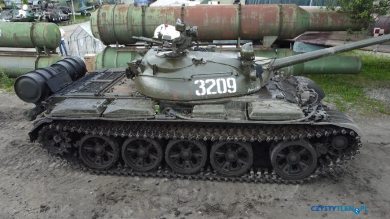 Otóż dowiedzieliśmy się, że jest to średni czołg produkowany w latach 1950 – 1958 do 1970, pojemność jego silnika to niecałe 40 litrów, natomiast moc to około 580KM. Spalanie to jakieś 300 do 700 litrów na 100 kilometrów, zależnie od terenu. Maszyna robi wrażenie.