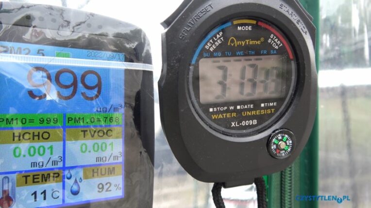 ten oczyszczacz udało nam się naprawdę całkiem nieźle zagazować, miernik całkowicie dochodził do skali – więcej nie pokazywał.